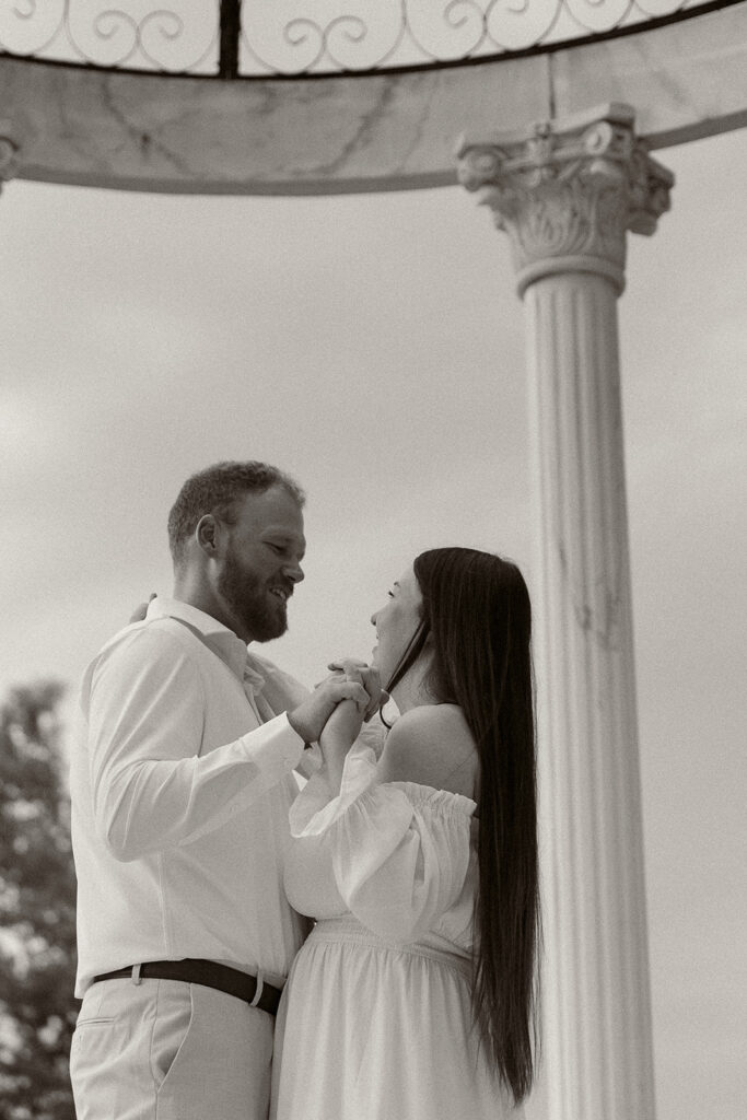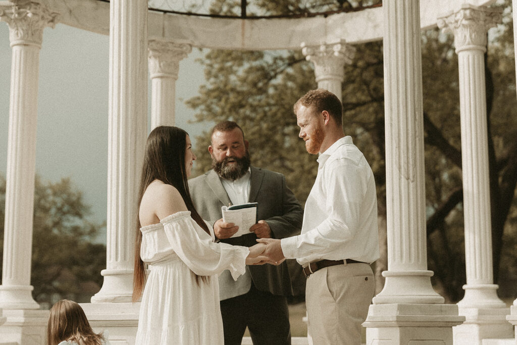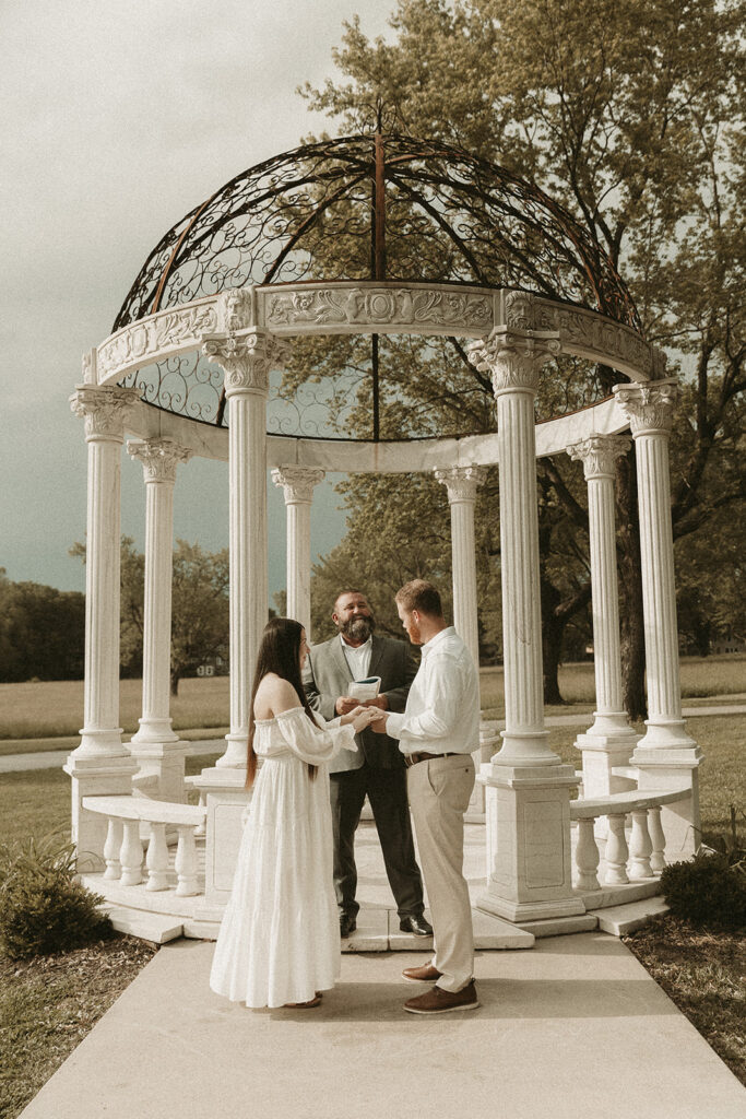 It was an overcast early-summer day, the kind of soft gray light photographers dream about. The front lawn’s white gazebo made the perfect spot for Connor and Kaylin to exchange vows, surrounded by just a few of their closest family members. It felt peaceful—no rush, no big production—just two people promising forever.