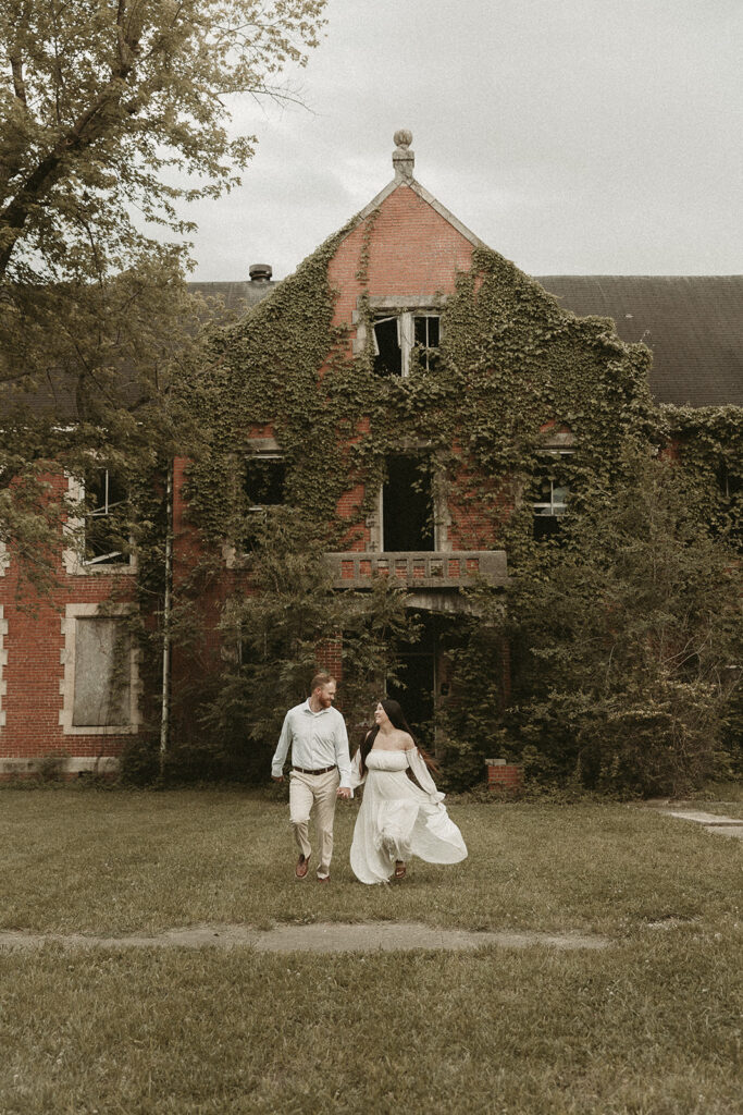 This wasn’t a random choice—Connor and Kaylin love ghost hunting and haunted building shows, and they’ve spent a lot of time at Belvoir exploring these spaces. Walking through the weathered brick and quiet, crumbling walls felt like stepping into a piece of their shared story.
