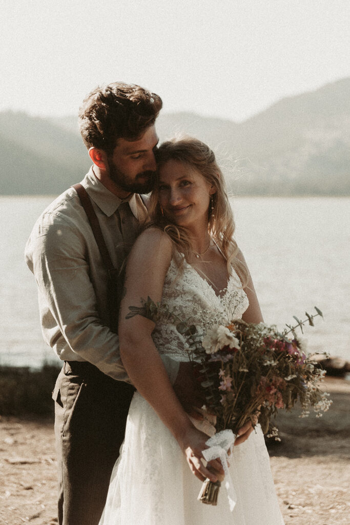 Before their ceremony, we found a quiet, shaded spot near the lake with views of the mountains peeking through. Their first look was filled with laughter, happy tears, and that electric kind of excitement you can feel just by being around them.