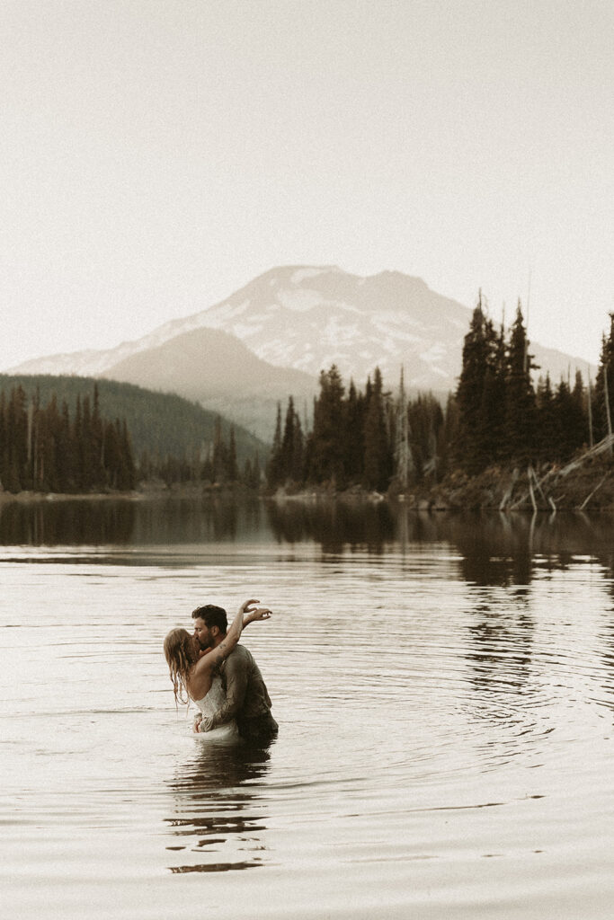 Some couples just have that energy—you know, the kind where you can tell they’re effortlessly cool because they don’t care what anyone else thinks. That’s exactly Zac + Nat. Originally from New Jersey, the two reconnected after high school, traveled the world together, and eventually made Oregon home after Zac’s military service. So, when it came time to plan their wedding, it only made sense to bring their new home into their story. They chose to elope at Sparks Lake in Central Oregon, tucked into the Deschutes National Forest, and it couldn’t have been a more perfect fit.