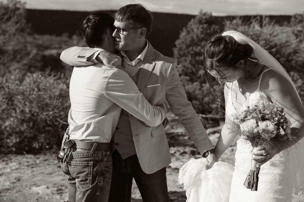 We then made our way to a second overlook for their ceremony — a spot with sweeping views that made the whole world feel still. With family gathered close, Kenny and Daria exchanged vows that echoed softly across the canyon walls.